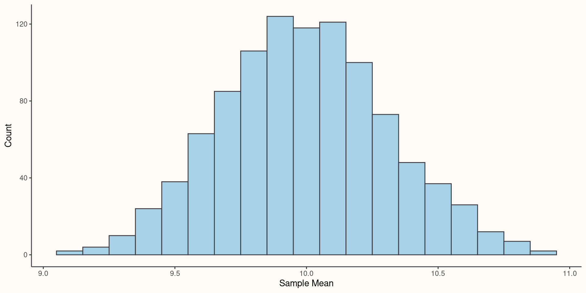 Imagine drawing 1,000 iid samples of applicant scores on a selection assessment. For each sample you compute the sample mean. You could approximate the sampling distribution of the mean by making a histogram using the 1,000 sample means you computed.