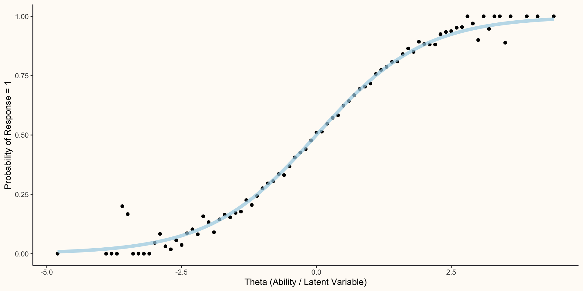 \[P(X = 1)=\frac{1}{1 + e^{-a(\Theta_{i}-b_{j})}}\]